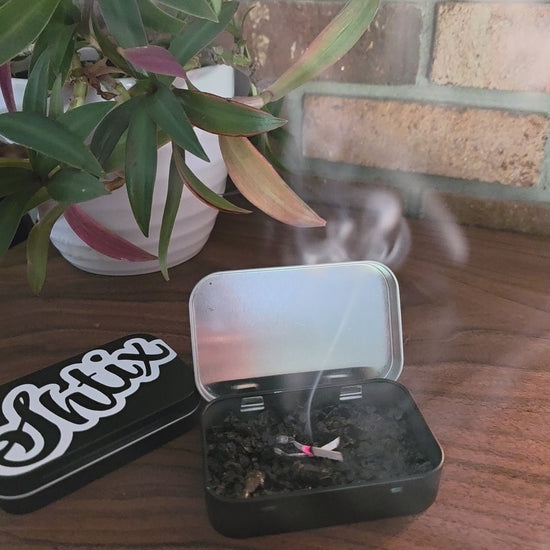The Starter Set comes with (3) books of Shtix matches and a branded travel tin for them to smolder in. Replacement packs of (3) matchbooks sold separately.